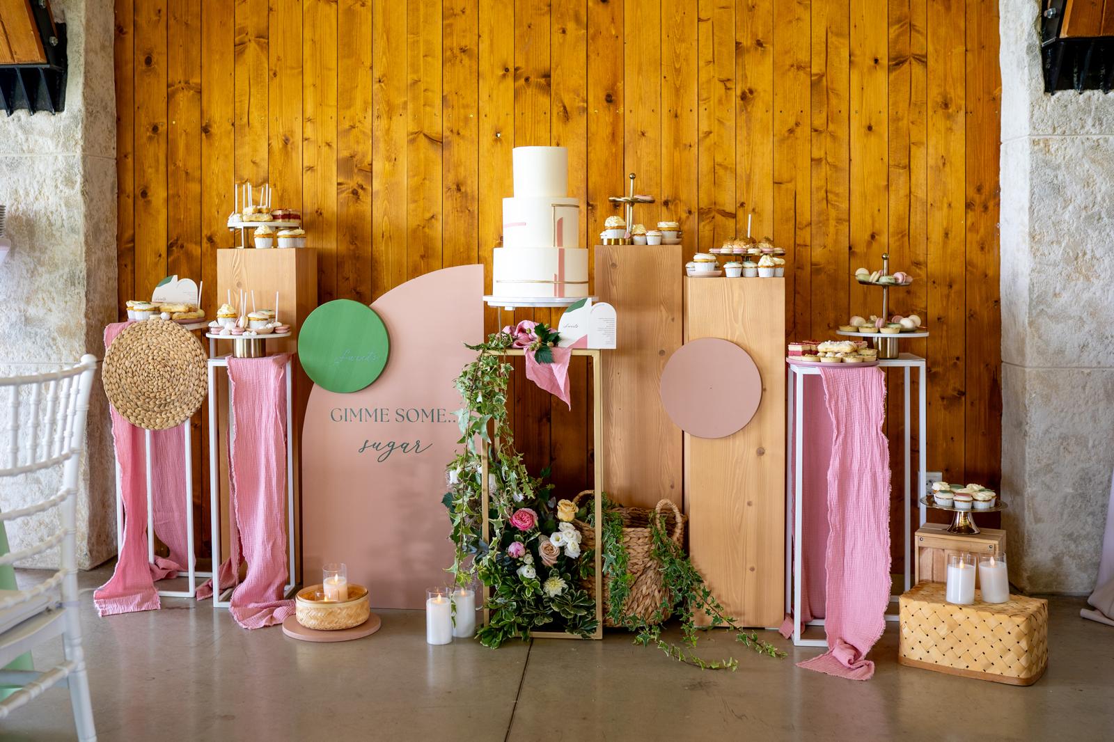 Jednoduché drevené bloky, ktoré slúžia ako podstavce pod dekorácie, vázy či dobroty na candy bar. Praktické aj vizuálne výrazné – krásne doplnia rustikálne a prírodné koncepty.